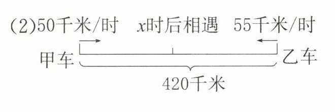6. (培优题)两车同时从甲、乙两地相向开出,已知快车每时行驶 75 km,慢车每时行驶 60 km,过了一段时间后,两车在距离中点 30 km 处相遇。相遇时两车已经行驶了多少时?(列方程解答)(10★)