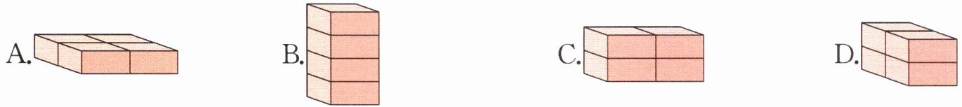 5. 将四个长 10 cm、宽 8 cm、高 5 cm 的长方体盒子,用彩纸包装起来。下面方法中,最省包装纸的是(