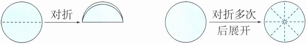 拿出一张圆形纸片,沿着直径对折。如下图所示。