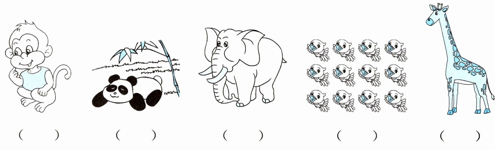 Hello,I'm Linda. I'm from the UK. But I'm in a zoo in China now. I see a panda. It's fat and cute. Look! The monkey is thin. I see twelve birds. They're green. And this elephant has a long nose. That giraffe has a short tail.