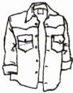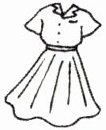 1. brown vest 2. white sweater 3. green skirt 4. blue dress 5. red shirt 6. yellow T - shirt