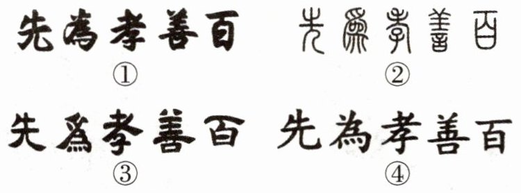 2. 下列对这四幅“百善孝为先”书法作品的欣赏,不正确的一项是(