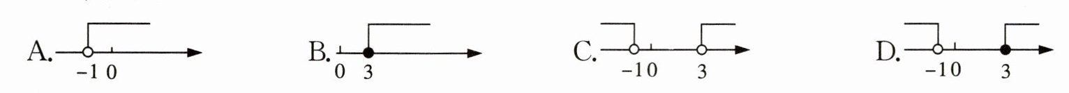 1. 等式$\frac { \sqrt { x - 3 } } { \sqrt { x + 1 } } = \sqrt { \frac { x - 3 } { x + 1 } }$成立的$x$的取值范围在数轴上可表示为( ).