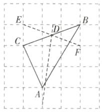 (3)借助网格,利用无刻度的直尺画出$BC$边上的中线$AD$.