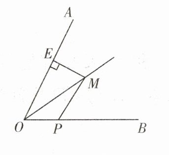 9. 如上右图,点M是$∠AOB$平分线上一点,$∠AOB=60^{\circ },ME⊥OA$于点E,$OE=\sqrt {3}$.若点P是OB上一动点,则线段MP的取值范围是______.