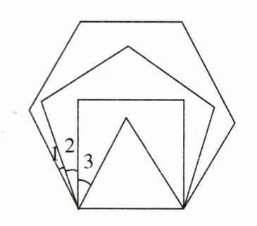 7. 如下左图,在平面上,将边长相等的正三角形、正四边形、正五边形、正六边形的一边重合并叠在一起,则$∠3+∠1-∠2=$____$^{\circ }$.