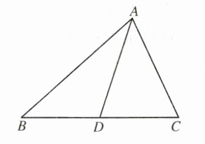 8. 如上图,在 $\triangle ABC$ 中,$AB = 6$,$AC = 4$,$AD$ 是 $BC$ 边上的中线,则 $AD$ 的取值范围是______。