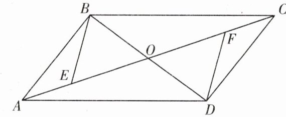 (1) 证明: $ \because $ 四边形 $ ABCD $ 是平行四边形, $ \therefore BO = DO $, $ AO = OC $. $ \because AE = CF $, $ \therefore AO - AE = OC - CF $, 即 $ OE = OF $. 在 $ \triangle BOE $ 和 $ \triangle DOF $ 中,$ \begin{cases} OB = OD, \\ \angle BOE = \angle DOF, \\ OE = OF, \end{cases} $ $ \therefore \triangle BOE \cong \triangle DOF (\text{SAS}) $.
