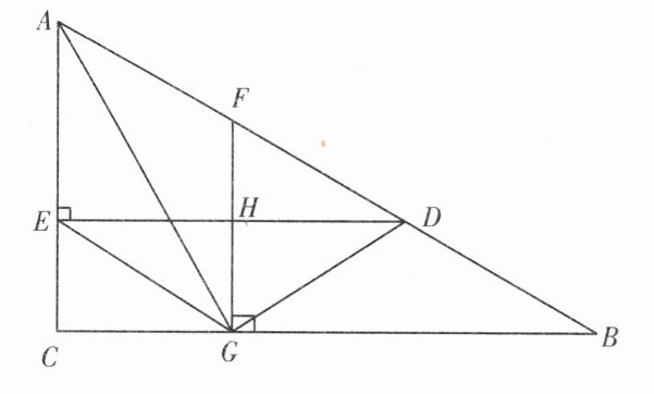 13. 如图,在$△ABC$中,D是AB上一点,$DE⊥AC$于点E,F是AD的中点,$FG⊥BC$于点G,与DE交于点H,若$FG=AF$,AG平分$∠CAB$,连接GE,GD。