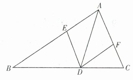 12. 如图,已知点D在$△ABC$的BC边上,$DE// AC$交AB于点E,$DF// AB$交AC于点F。
