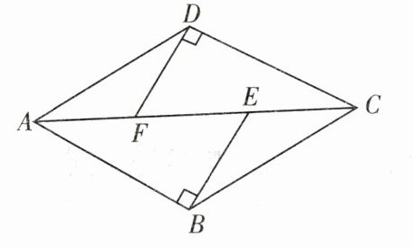 2. 如下左图,在菱形 $ABCD$ 中,$\angle BAD = 60^{\circ}$,$BE \perp AB$,$DF \perp CD$,垂足分别为点 $B$,$D$。若 $AB = 6\mathrm{cm}$,则 $EF = (\ )$。