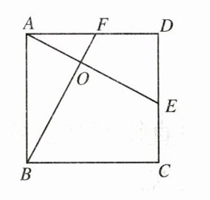 3. 如上图,点 $E$,$F$ 分别是正方形 $ABCD$ 的边 $CD$,$AD$ 上的点,且 $CE = DF$,$AE$,$BF$ 相交于点 $O$,下列结论:① $AE = BF$;② $AE \perp BF$;③ $AO = OE$;④ $S_{\triangle AOB} = S_{四边形DEOF}$。其中错误的有( )。