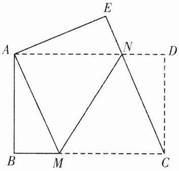 10. 如图,将一张矩形纸片 $ABCD$ 沿直线 $MN$ 折叠,使点 $C$ 落在点 $A$ 处,点 $D$ 落在点 $E$ 处,直线 $MN$ 交 $BC$ 于点 $M$,交 $AD$ 于点 $N$。