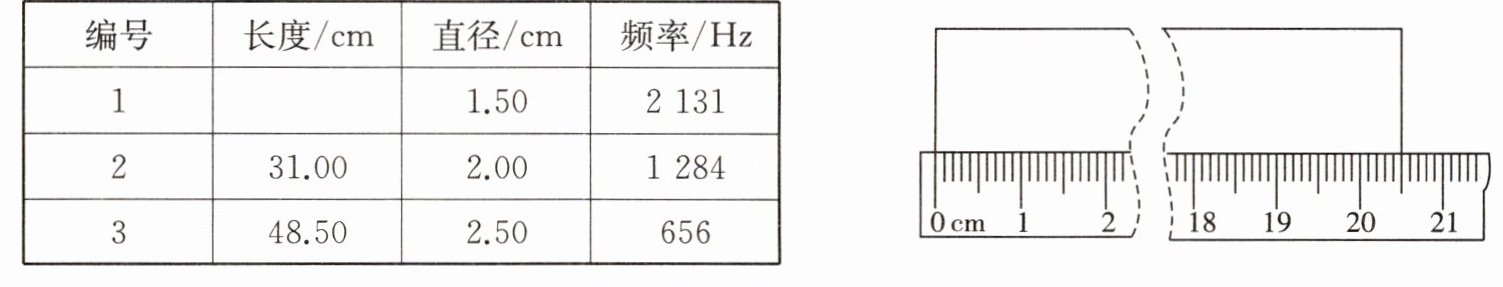 (1)用刻度尺测量1号管长度,如图所示,读数是____cm。