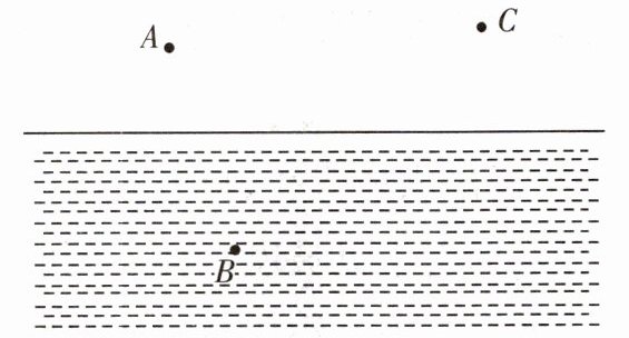 5.平静水面上方的小鸟和水中的小鱼,某时刻的实际位置为A、B,如图所示,在C点处的人恰好看 到它们在水中的像A'、B'重合,请画出小鸟在水中像的位置和人眼看到小鱼的光路图。