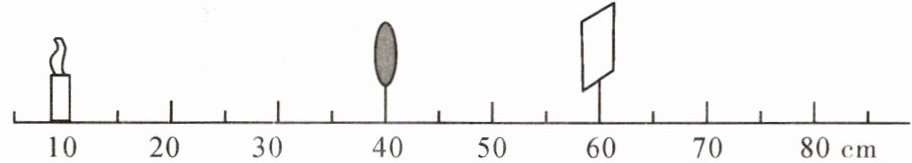 3.在光具座上做凸透镜成像实验,当各实验器材的位置情况如图所示时,在光屏上恰好成一清晰的像,则可知该凸透镜的焦距一定在____cm到____cm之间,屏上的像与烛焰相比是____(选填“放大”“缩小”或“不变”)的。