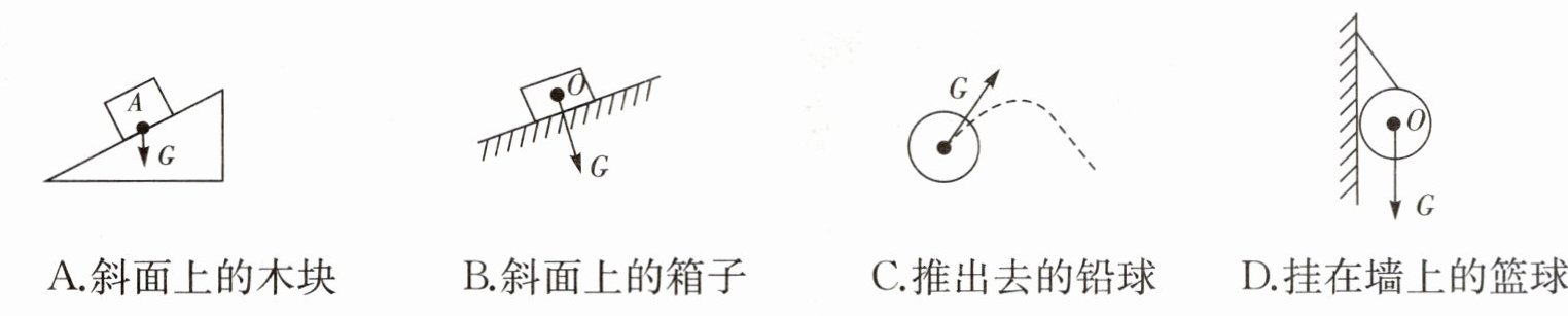 8. 如图所示,下列重力示意图正确的是 ( )