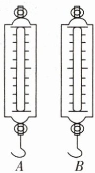 (2) 如图所示的$ A $、$ B $两弹簧测力计分别使用了甲、乙两弹簧,它们的外壳相同,刻度线分布情况相同。分析上表数据可知:量程较大的是____(选填“$ A $”或“$ B $”)测力计,精度较高的是____(选填“$ A $”或“$ B $”)测力计。