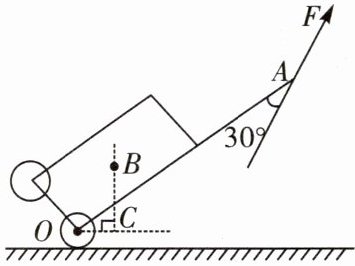 4.如图所示为一拉杆旅行箱的示意图,将其视为杠杆,O为支点,B为重心,BC为竖直方向,A为拉杆端点。已知箱重为250N,OA为120cm,OC为24cm。在A点沿图示方向施加动力F,箱子静止,则动力F的大小为____N。