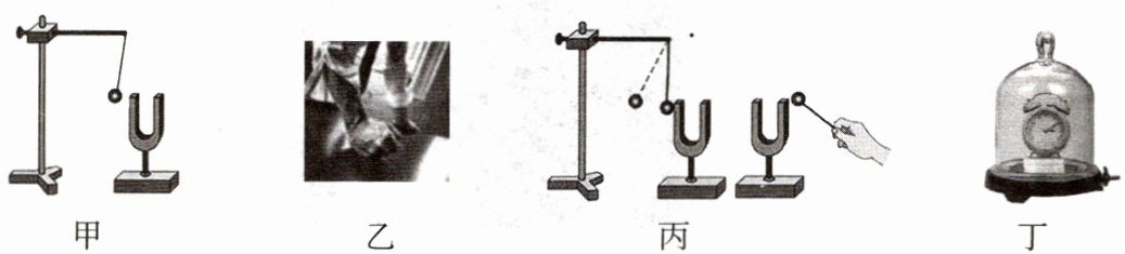 (4)如图丁所示,把正在响铃的闹钟放到玻璃罩内,逐渐抽出罩内的空气,所听到的声音将会逐渐____,由此推理可知____。