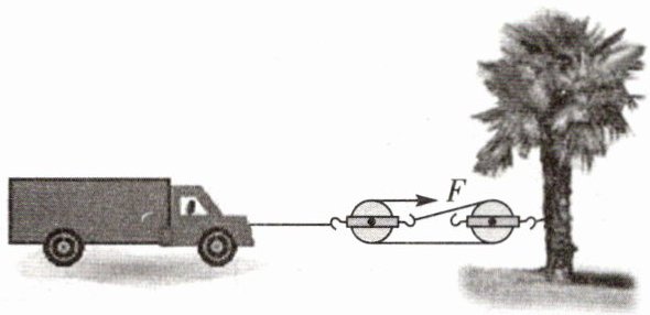 10.重$2\times 10^{4}\ \text{N}$的汽车陷入泥中,受到的阻力为$3\times 10^{3}\ \text{N}$,用如图所示的装置(不计机械自重和绳重)拉汽车。