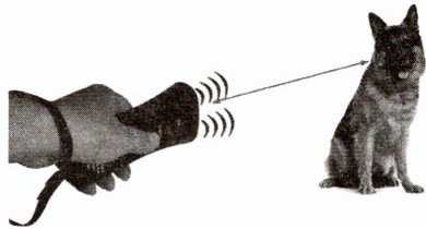 6.现代生活里,许多人爱养狗,但遛狗伤人事故时有发生,超声驱狗器(如图所示)则应运而生。实验结果显示:对着狗一按驱狗器的开关,狗就好像受到了巨大的刺激而躲开,旁边的人却什么也没听见。这是因为驱狗器 ( )