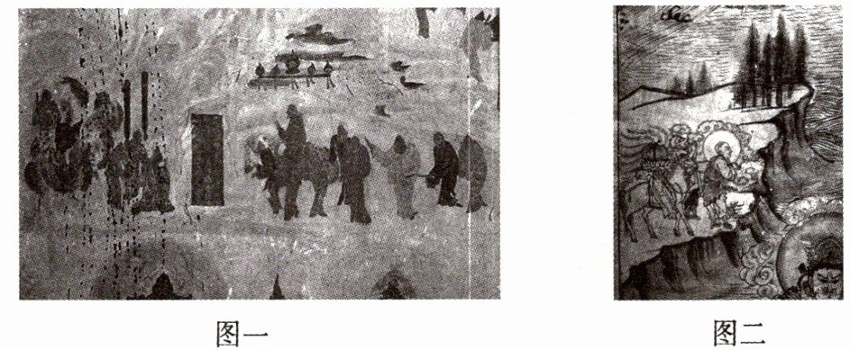 材料一 据史料记载,莫高窟始建于366年。莫高窟开窟、塑像、绘画的佛事活动持续10个世纪,14世纪的元代以后才停止了建窟。迄今,莫高窟在1700多米长的鸣沙山东麓断崖上,保存了4世纪至14世纪的735个洞窟,分成南北两区。莫高窟……包含了建筑、雕塑、壁画、音乐、舞蹈等多种门类的艺术。