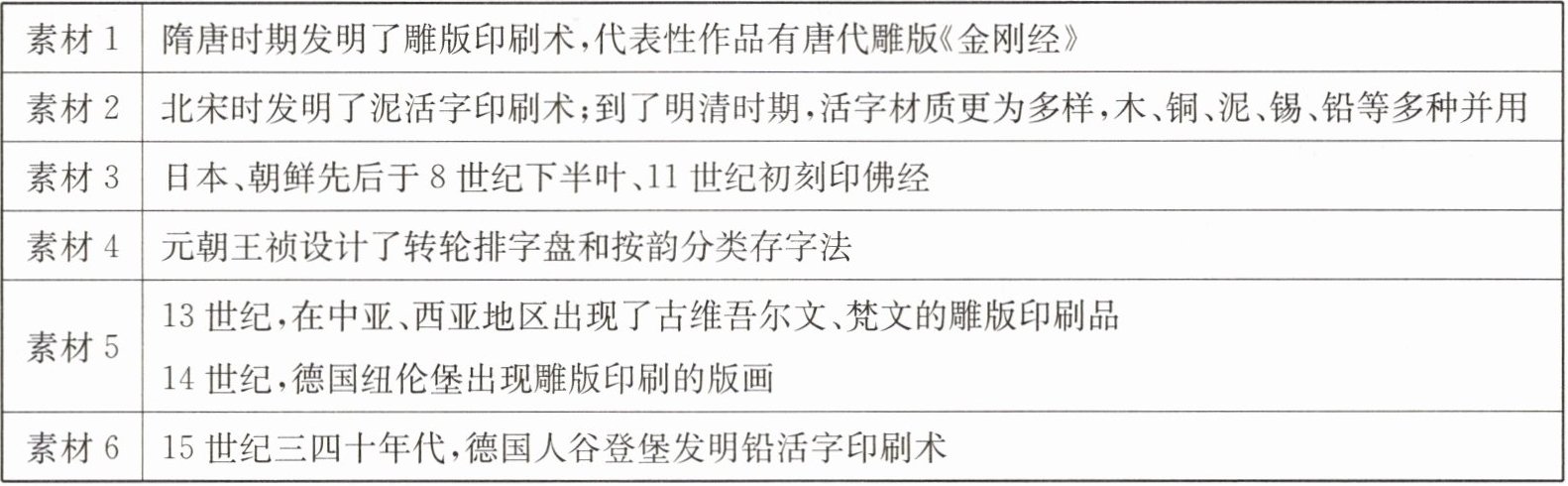 9.小史同学正在开展有关中国印刷史的项目式学习,你来参与并完成下列任务。