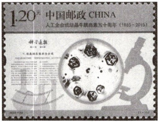 7.下图是我国首次人工合成结晶牛胰岛素五十周年(1965—2015)纪念邮票,此邮票铭记了(