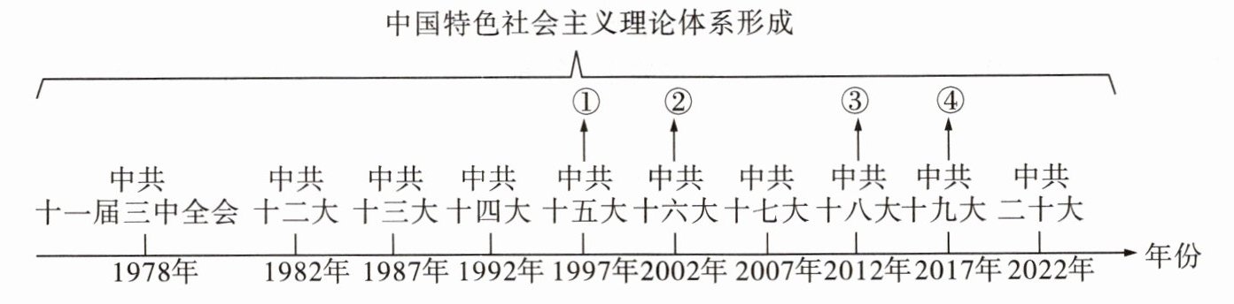 7.观察“中国特色社会主义理论体系形成”年代尺,其中“习近平新时代中国特色社会主义思想被确立为中国共产党必须长期坚持的指导思想”在年代尺上对应的序号为 (