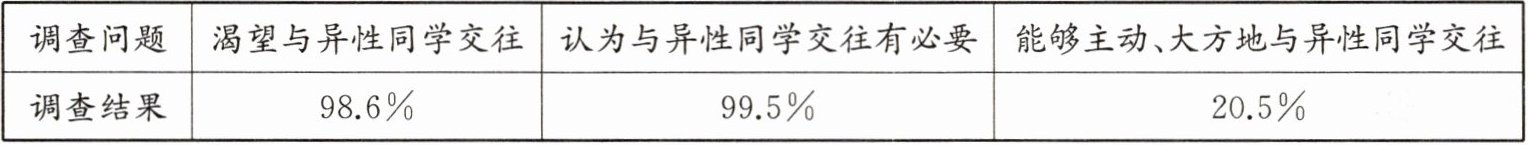 (1)同学们渴望与异性同学交往,能够认识到与异性同学交往的必要性,但缺乏积极主动、健康交往的行动。