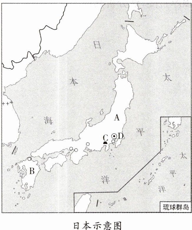 山,它常被看作是日本的象征。D首都东京位于日本最大的平原关东平原