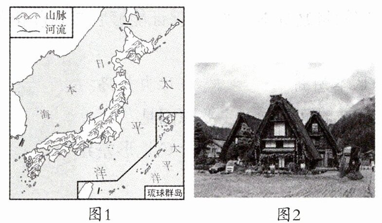 材料二图1为日本地形图,图2为“合掌造”示意图。