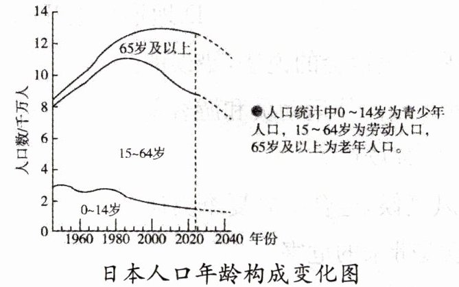 1.读日本人口年龄构成变化图,目前日本面临的主要人口问题是(