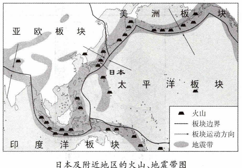 1.读日本及附近地区的火山、地震带图,回答下列问题。
