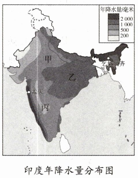 2.根据甲、乙两地的年降水量分析,这两地的主要粮食作物应分别是(