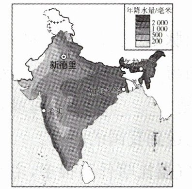 1.下列关于印度年降水量分布的地区差异及其原因,叙述正确的是(