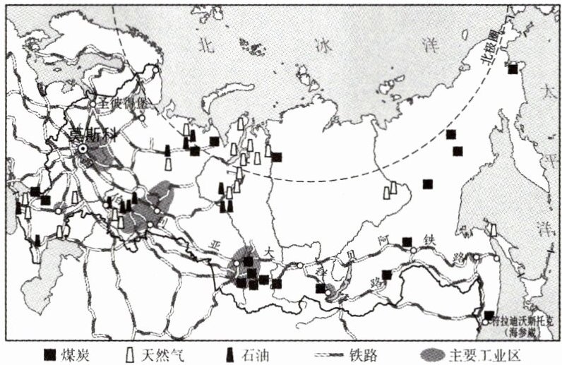 受自然环境特点的影响,俄罗斯铁轨宽度较世界上多数国家宽,更宽的轨距提高了俄罗斯铁路承载能力,保证铁路运输的安全,并且俄罗斯的长途火车仅设置卧铺。读俄罗斯铁路分布示意图,完成2、3题。