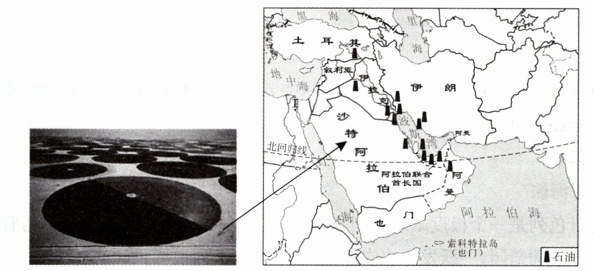 材料一 20世纪70年代末,沙特阿拉伯因在沙漠中种植小麦而出现一个个规模巨大的圆形麦田,从高空俯瞰,形似带纹理的“绿色唱片”。后来由于地下水枯竭等问题,沙特阿拉伯开始控制“绿色唱片”的数量。