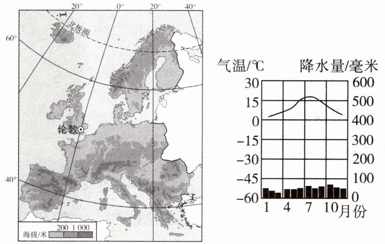 1.读欧洲西部地形分布图和该地区某地的气候资料图,回答下列问题。