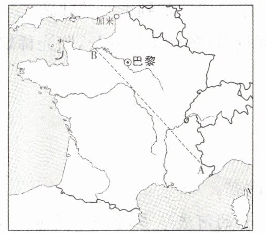 (填“A”或“B”)沿岸盛产葡萄。旅游业是法国经济支柱产业之一,占国内生产总值的比重约为6.7%。