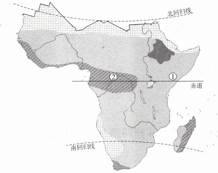 5.①②两地同位于赤道地区,但①地气候类型不同于②地,①地气候类型是 (