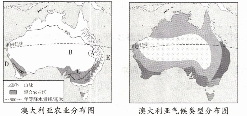 (2)澳大利亚绵羊品种繁多,不同品种的绵羊适应不同的气候条件,其中细毛羊喜欢温暖干燥的气候,据此推测图中