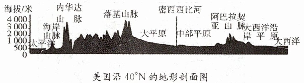 )A.山脉直逼西海岸,西海岸无大的城市分布