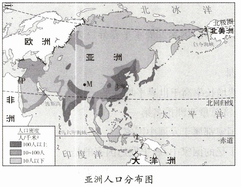 ______。(3) 字母P处是亚洲与非洲的分界线______