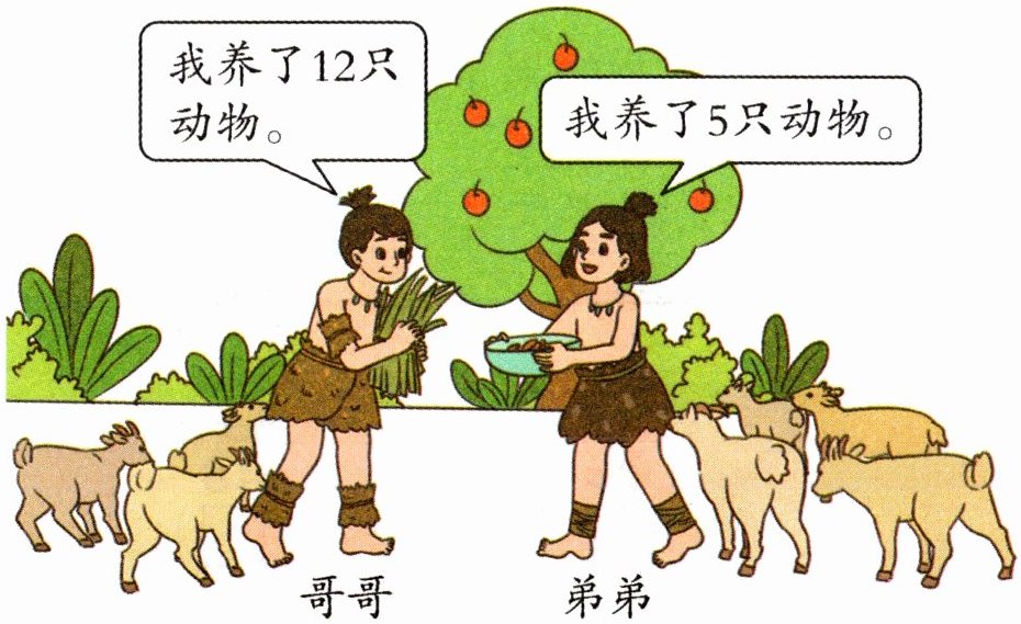 2 用你喜欢的图形分别表示哥哥和弟弟养的动物只数,再算一算。