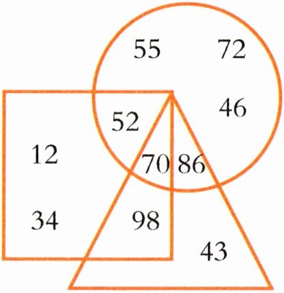 1 淘气和笑笑来到智慧城堡。城堡中的一些数字被放在了不同的图形中,请你和他们一起解决下面的问题吧!
