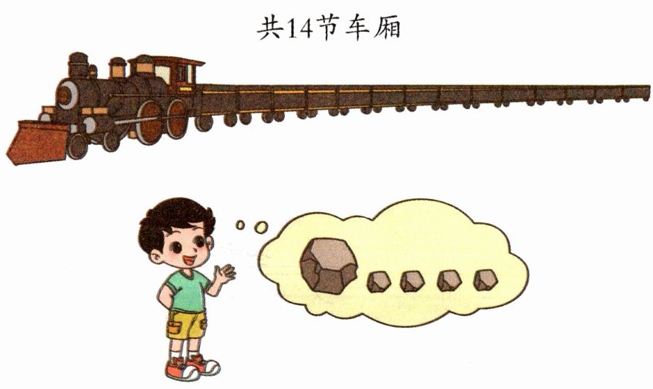 2 淘气发现时空列车共有14节车厢。他是这样来表示14的,你能看懂吗?