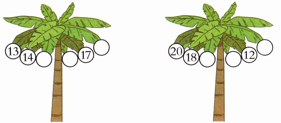 2 树上的果子可真多呀!你能发现果子上数字的规律吗?请你仔细看一看,并填一填吧!