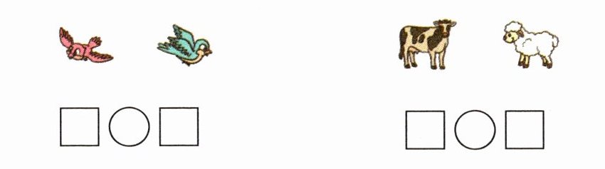 (2)先数一数动物各有多少,填一填,再在$◯$里填上“$>$”“$<$”或“$=$”。
